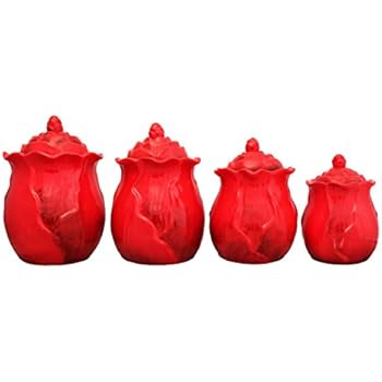 Ceramic Canister Sets For Kitchen Red / Red Ceramic Canister Set 4pc Kitchen Counter Storage Jars ... / Barnyard designs decorative nesting kitchen canister jars with lids, brick red metal rustic vintage farmhouse container decor for flour sugar coffee tea storage, set of 4, largest is 5.5 x 11.25.